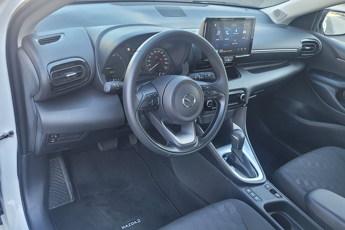 PERIZIA DELL'ESPERTO PRIVACAR : MAZDA Mazda2 Hybrid 1.5 VVT e-CVT Full Hybrid Electric Centre-Line Il proprietario non fumatore la vende per non utilizzo, tagliando ufficiale, La vettura è dotata di cambio automatico, fari alogeni, Cruis Control, frenata assistita, telecamera posteriore, clima bizona, comandi al volante con telefono bluetooth, sistema assistenza alla salita. riconoscimento pedoni, sistema di mantenimento carreggiata, sensori pioggia, bracciolo anteriore, CarPlay cruscotto digitale, può essere guidata da un neopatentato. Andare su lista accessori per vedere sezione dedicata sul sito Privacar.
