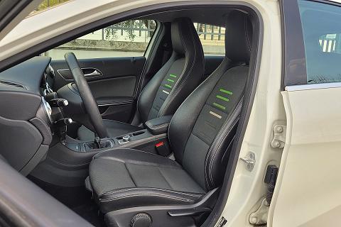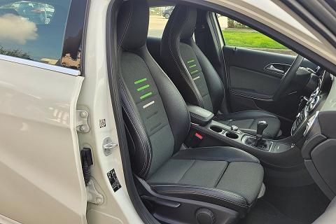 | Sedili sportivi in pelle ecologica ARTICO e tessuto nero con righine verdi |