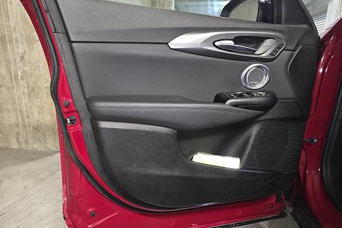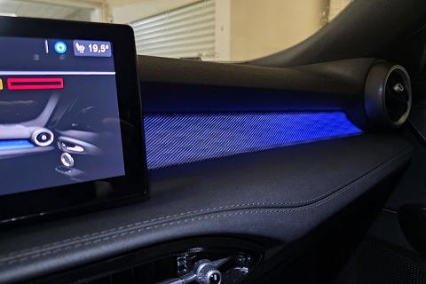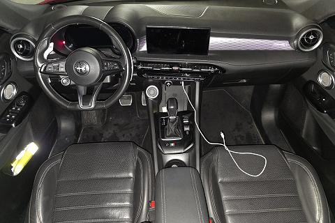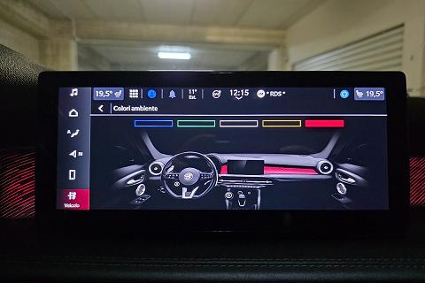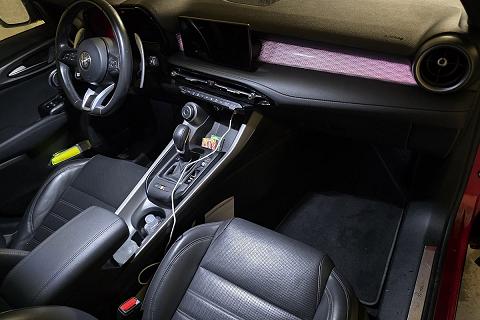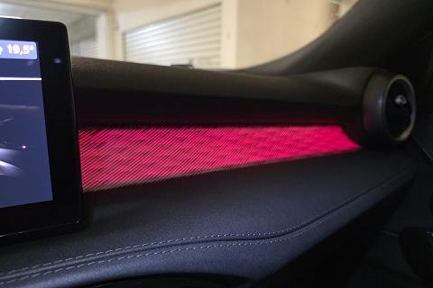 | Sedili in Alcantara traforata e tessuto tecnico soft-touch con cuciture rosse |