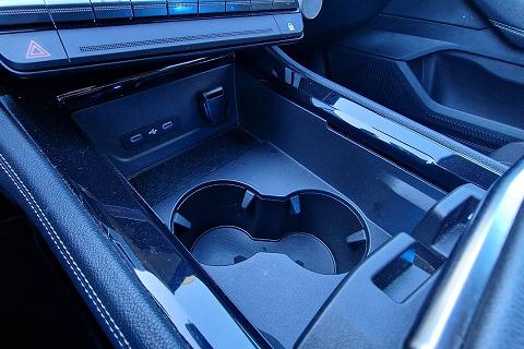 | Console centrale alta con bracciolo portaoggetti scorrevole |
