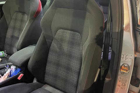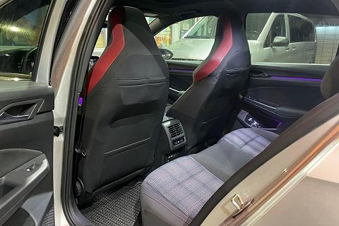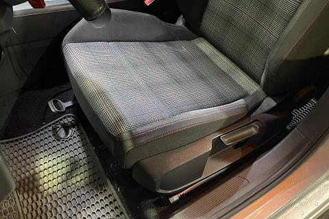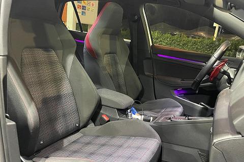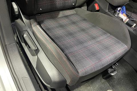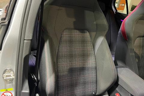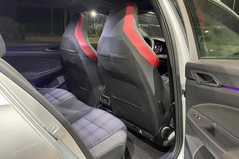 | Sedili anteriori sportivi GTI con poggiatesta integrati e cuciture a contrasto rosse |