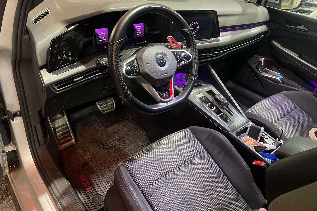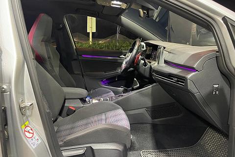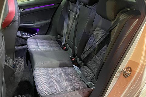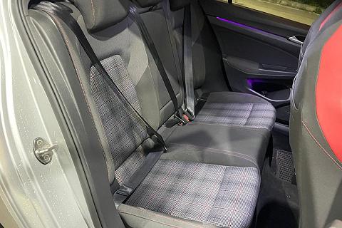 | Sedili GTI con poggiatesta integrati con cuciture a contrasto rosse |