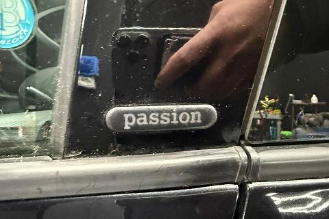 | Targhetta "passion" nell'alloggiamento triangolare ant. per i retrovisori esterni |
