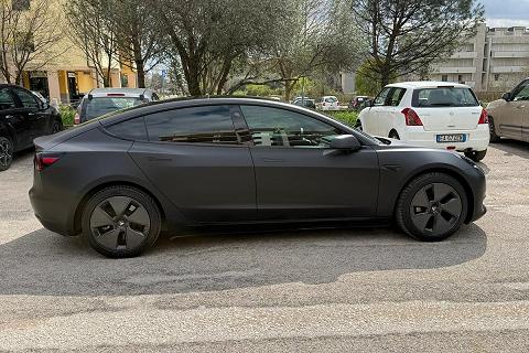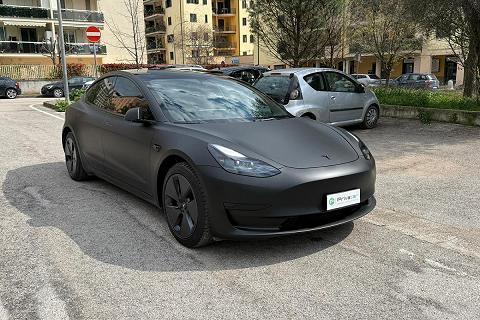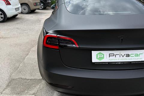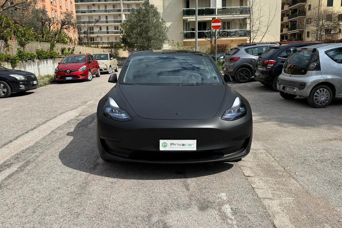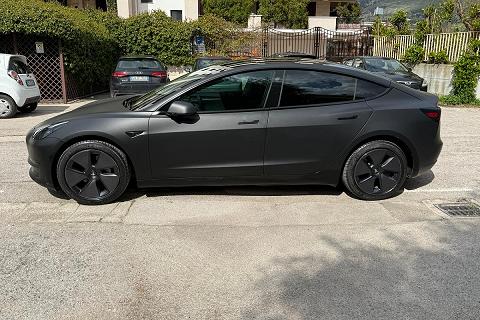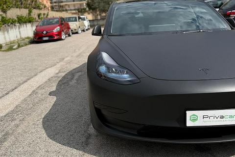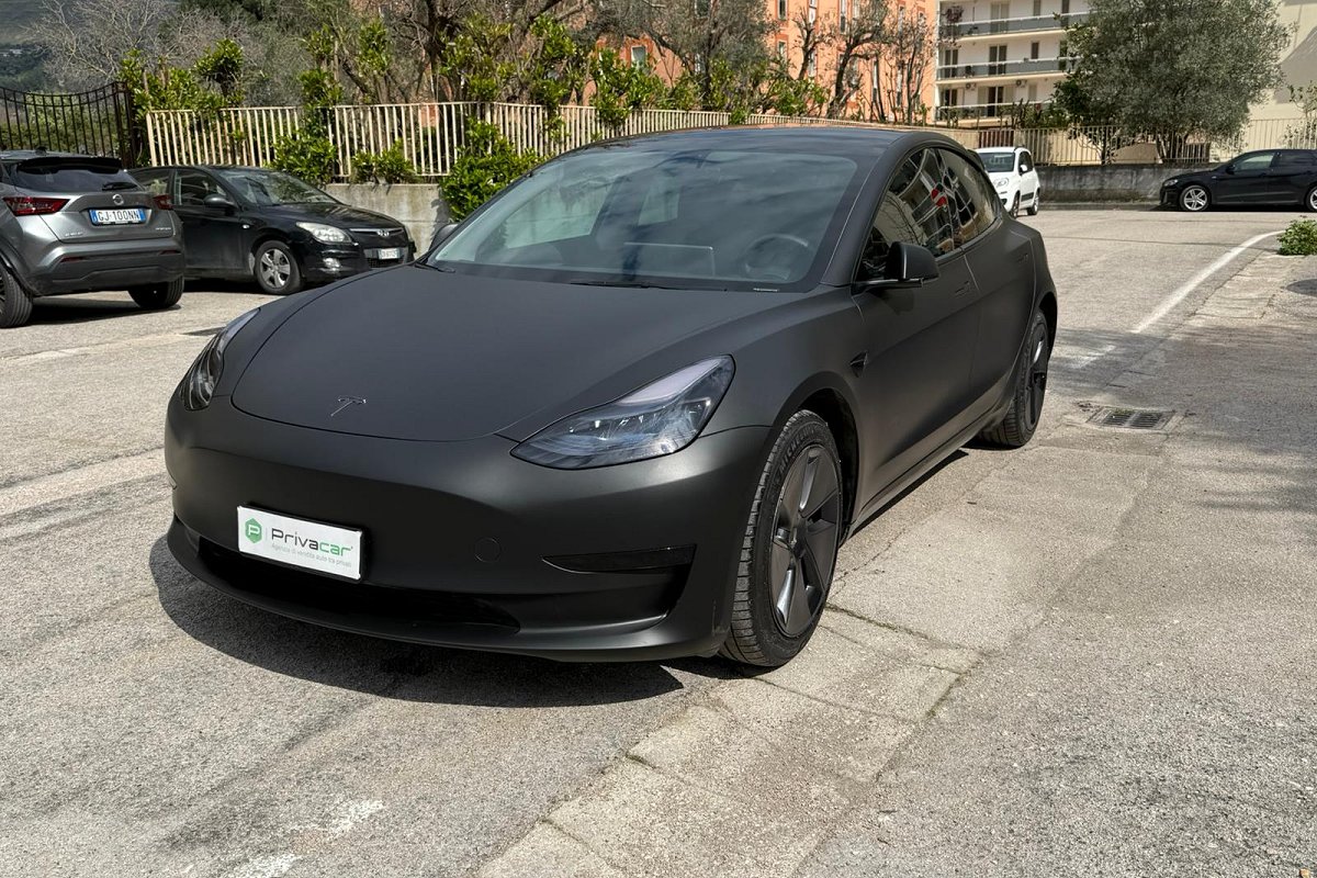 PERIZIA DELL'ESPERTO PRIVACAR: Tesla Model 3 RWD (trazione posteriore). Immatricolata 06/2023 con 43.829 km, Unico proprietario. Vettura in condizioni eccellenti pari al nuovo, dotata di tutte le tecnologie Tesla tra cui: sensori e telecamere a 360° , sistema di infotainment con maxi display centrale, navigazione intelligente con pianificazione delle ricariche, connettività completa, aggiornamenti software OTA, interni minimal premium con finiture di alta qualità , climatizzatore automatico, cerchi in lega e fari full LED. La vettura è stata sottoposta a wrapping professionale nero opaco, effettuato da officina specializzata su vetture Luxury, subito dopo l’acquisto (dopo soli due giorni) pertanto la vernice originale nero lucido sottostante è perfettamente conservata e come nuova. Ricarica ultra rapida tramite rete Tesla Supercharger con tempi indicativi 0-100% in circa 30 minuti, oppure ricarica domestica veloce con Wallbox da 12 kW in circa 4 ore. Auto estremamente efficiente e dai costi di gestione ridotti, unico piccolo segno estetico vicino allo specchietto retrovisore destro, per il resto carrozzeria interni e meccanica perfetti. Pronta all’uso, senza alcun lavoro da effettuare, ideale per chi cerca un’auto moderna, tecnologica e dal look esclusivo. Per info maggiori o per fissare un appuntamento di visione in sede, chiamaci al 3271998779.