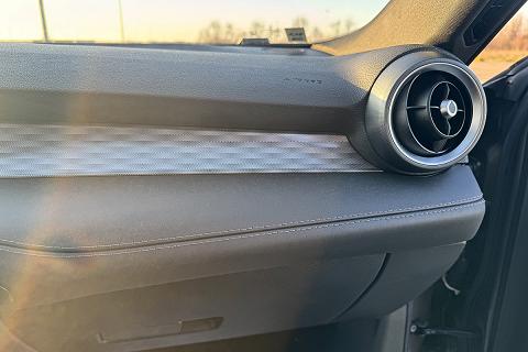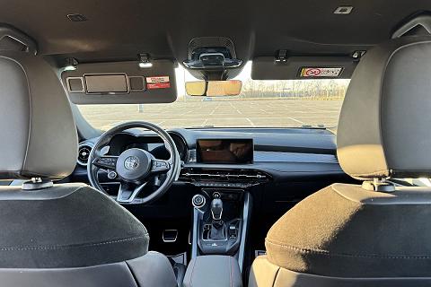 | Sedili in Alcantara traforata e tessuto tecnico soft-touch con cuciture rosse |
