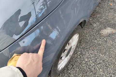 Leggeri segni da parcheggio su paraurti e sportelli e piccola scheggiatura da sasso su parabrezza, visibile in foto.