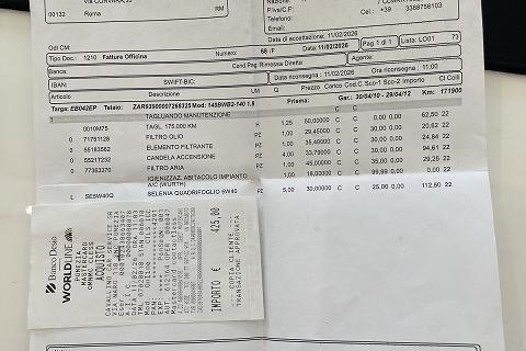 | Ricevute/fatture tagliandi |