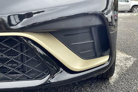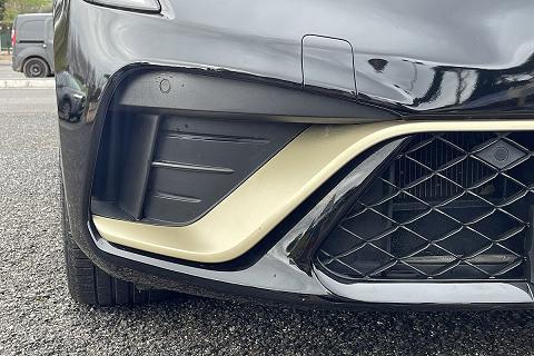 | Volante in pelle con impunture oro e badge e-tech engineered |