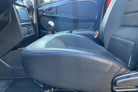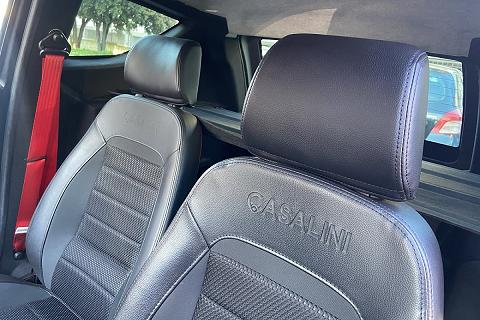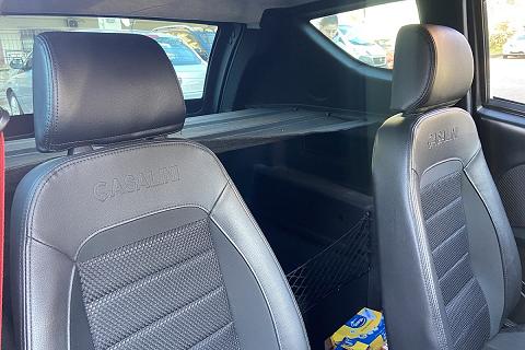 | Sedili "RockBlack" con inserti in tessuto scorrevoli e regolazione schienale con poggiatesta |