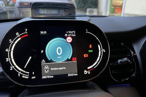 | Tachimetro e contagiri dietro al volante con indicatore di temperatura esterna, velocità, ora e data |
