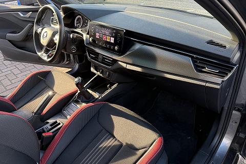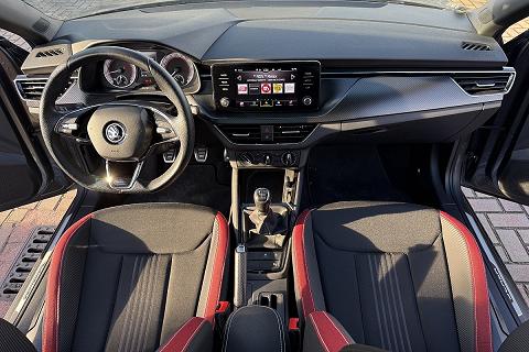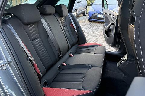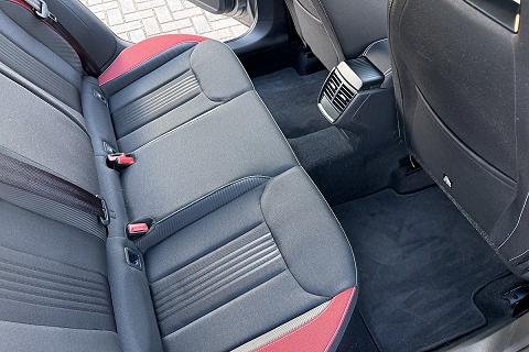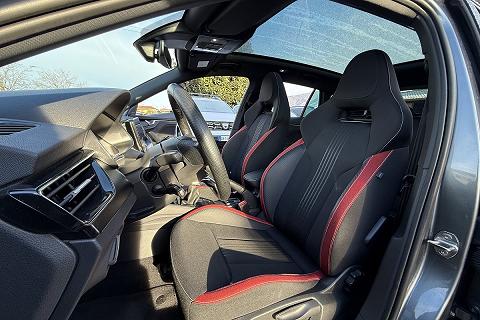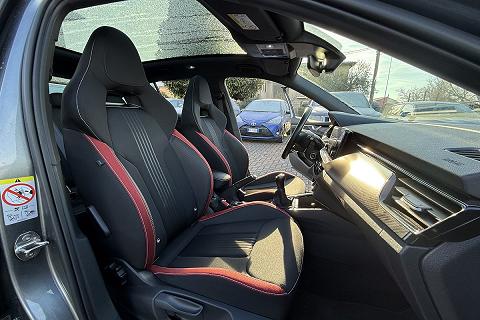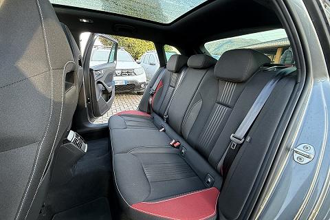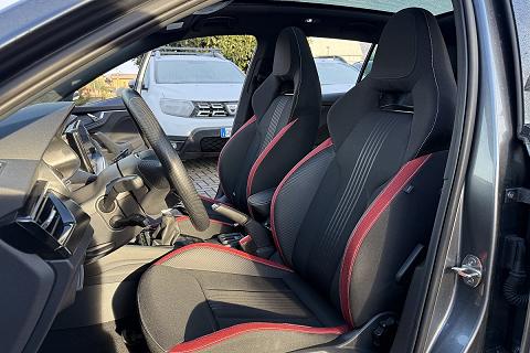 | Sedili sportivi con inseriti in tessuto rosso |