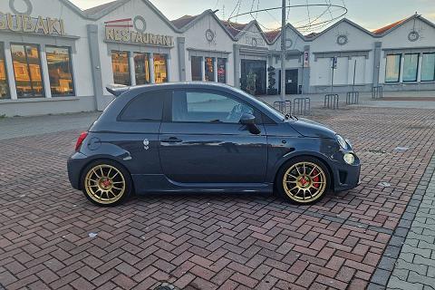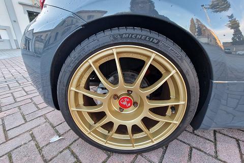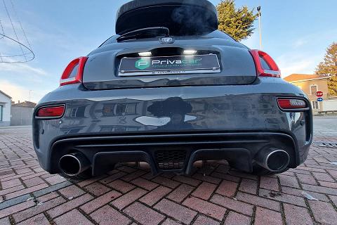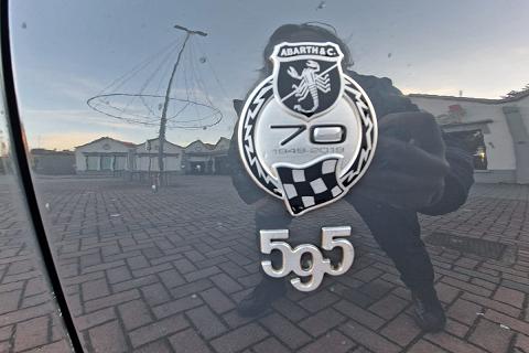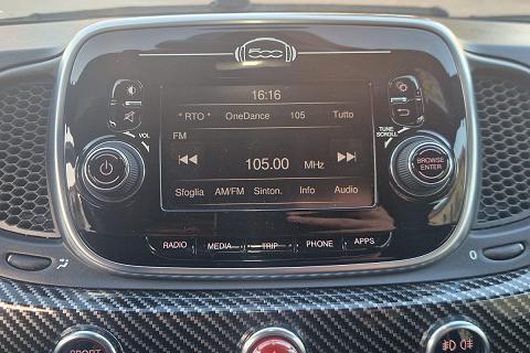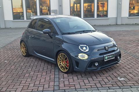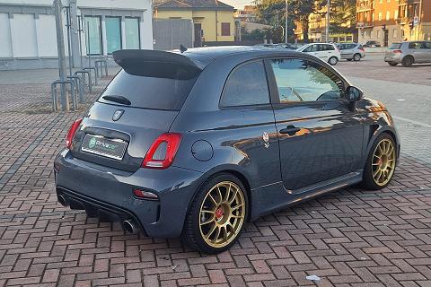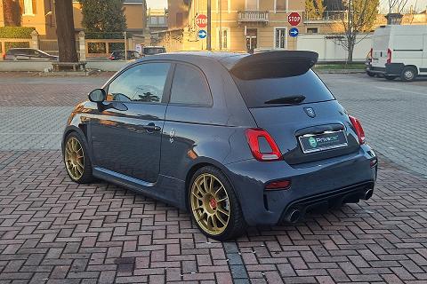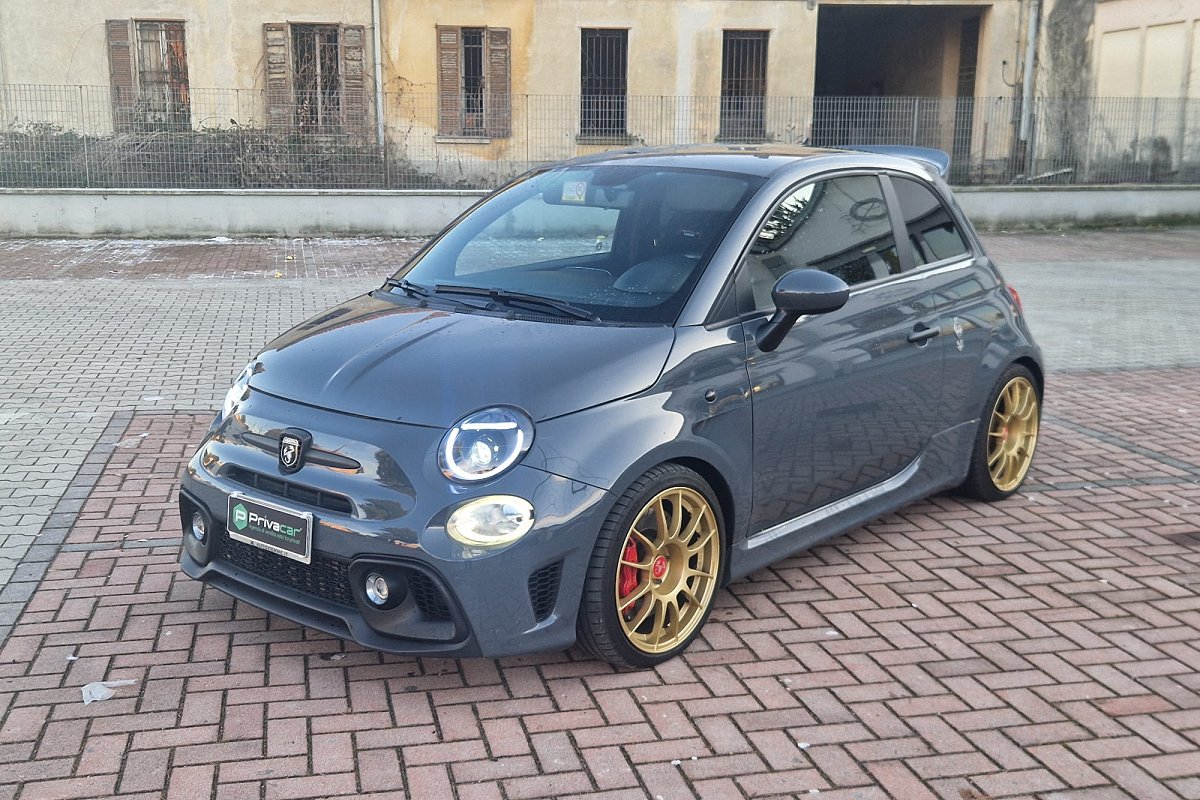 Tra gli equipaggiamenti di serie troviamo: airbag ginocchia lato guida, airbag guida, airbag laterali protezione testa, airbag passeggero, calotte specchio in tinta carrozzeria, cambio manuale a 5 marce, climatizzatore manuale, doppio terminale di scarico cromato, controllo elettronico della stabilità e della trazione con Hill Holder, fascia plancia con finitura in tinta carrozzeria, inserti paraurti anteriori e posteriori in colore nero opaco, kit gonfiaggio/riparazione pneumatici (Fix & Go), logo 70° Anniversario, luci diurne (DRL) a LED, palpebra strumenti rivestita in pelle, paraurti anteriore con griglia a nido d'ape e tampografia Abarth, retrovisori esterni con regolazione elettrica e sistema di disappannamento, schienale sedile posteriore sdoppiato 50/50 con n. 2 poggiatesta posteriori regolabili in altezza, sedili sportivi Abarth in tessuto, servizi Live, telecomando apertura/chiusura porte, TPMS (sistema di monitoraggio pressione pneumatici), TTC (Torque Transfer Control), Uconnect radio touch da 5", Bluetooth con streaming audio, Prese USB e AUX, vernice pastello Grigio Pista, volante regolabile in altezza, volante sportivo in pelle con mirino, comandi al volante e inserti cromo-satinati e tanti altri