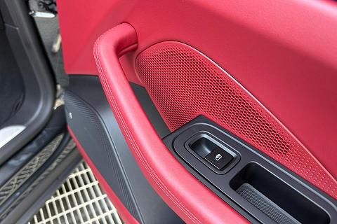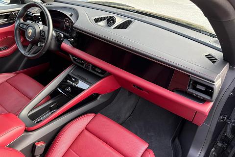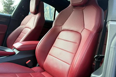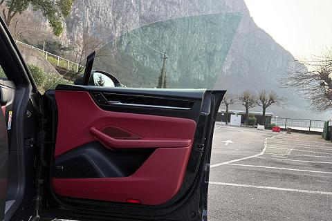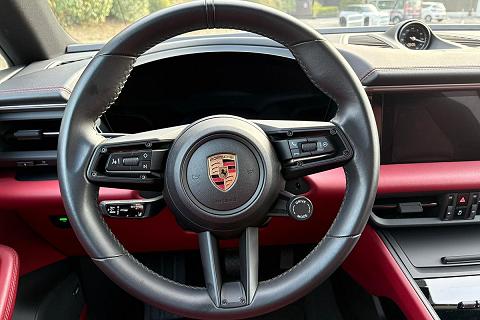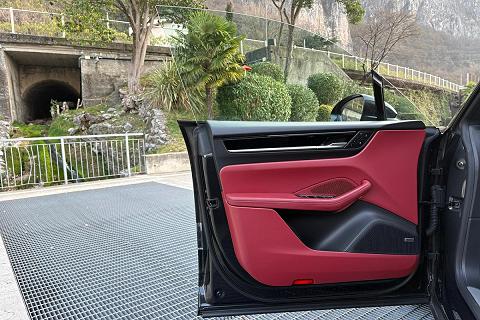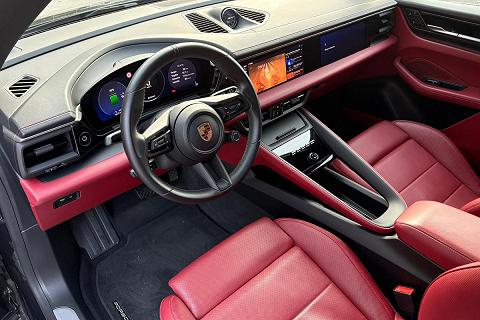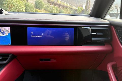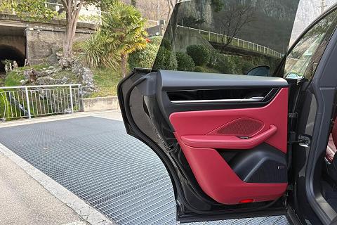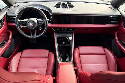 Configurazione estremamente elegante con vernice metallizzata Grigio Vulcano abbinata ai raffinati interni in pelle Rosso Bordeaux, una combinazione sportiva e molto rara che valorizza al massimo le linee della nuova Macan elettrica.