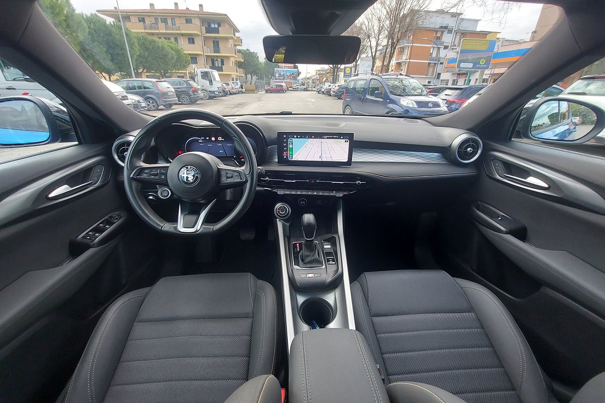 | Sedili in tessuto Tex Alfa Carbon e tessuto tecnico Soft-Touch con cuciture biscotto |