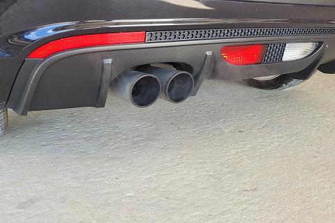 | Assetto ribassato e doppio terminale di scarico in acciaio satinato in vista |