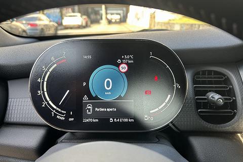 | Tachimetro e contagiri dietro al volante con indicatore di temperatura esterna, velocità, ora e data |