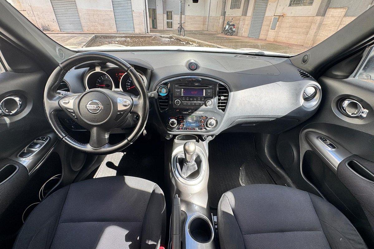 PERIZIA DELL'ESPERTO PRIVACAR: NISSAN Juke 1.6 Acenta, unisce lo stile compatto e sportivo a un motore brillante e affidabile, perfetto sia per la città che per i viaggi. Tenuta in ottime condizioni dal proprietario non fumatore, che regolarmente ha fatto manutenzione da officina di fiducia con documentazione in nostro possesso e visionabile. L'auto è dotata di Cambio manuale a 5 marce e tra gli accessori particolari abbiamo Cerchi in lega da 17" Elegance, Climatizzatore automatico, Cruise control e limitatore di velocità con comandi al volante, Bluetooth, Radio CD/MP3 con USB e AUX-IN, Computer di bordo, Alzacristalli elettrici anteriori e posteriori, Volante e pomello cambio in pelle, Fendinebbia, 6 Airbag, ABS, ESP, EBD e TCS (sistemi di sicurezza attiva) e tanti altri presenti nella lista accessori. L'auto è venduta con certificazione di conformità 12 MESI. Possibilità di attivazione GARANZIA GUASTI 12 MESI ESTENDIBILE A 36. Possibilità di FINANZIAMENTO a tassi agevolati anche senza anticipo. VISIONE E TEST DRIVE SU APPUNTAMENTO