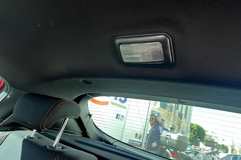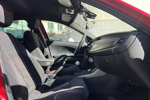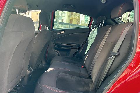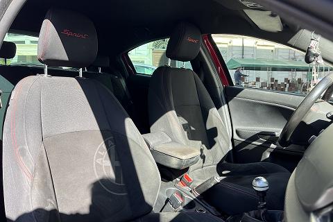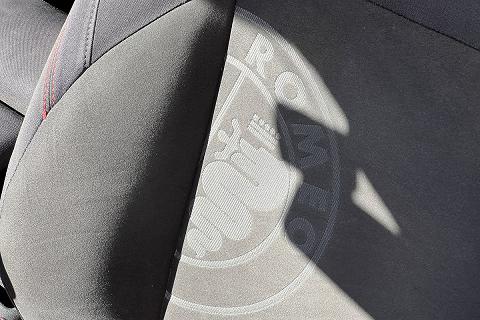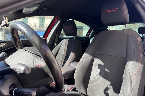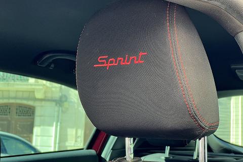 | Sedili Sprint in tessuto e alcantara con cuciture rosse e logo Sprint su poggiatesta |