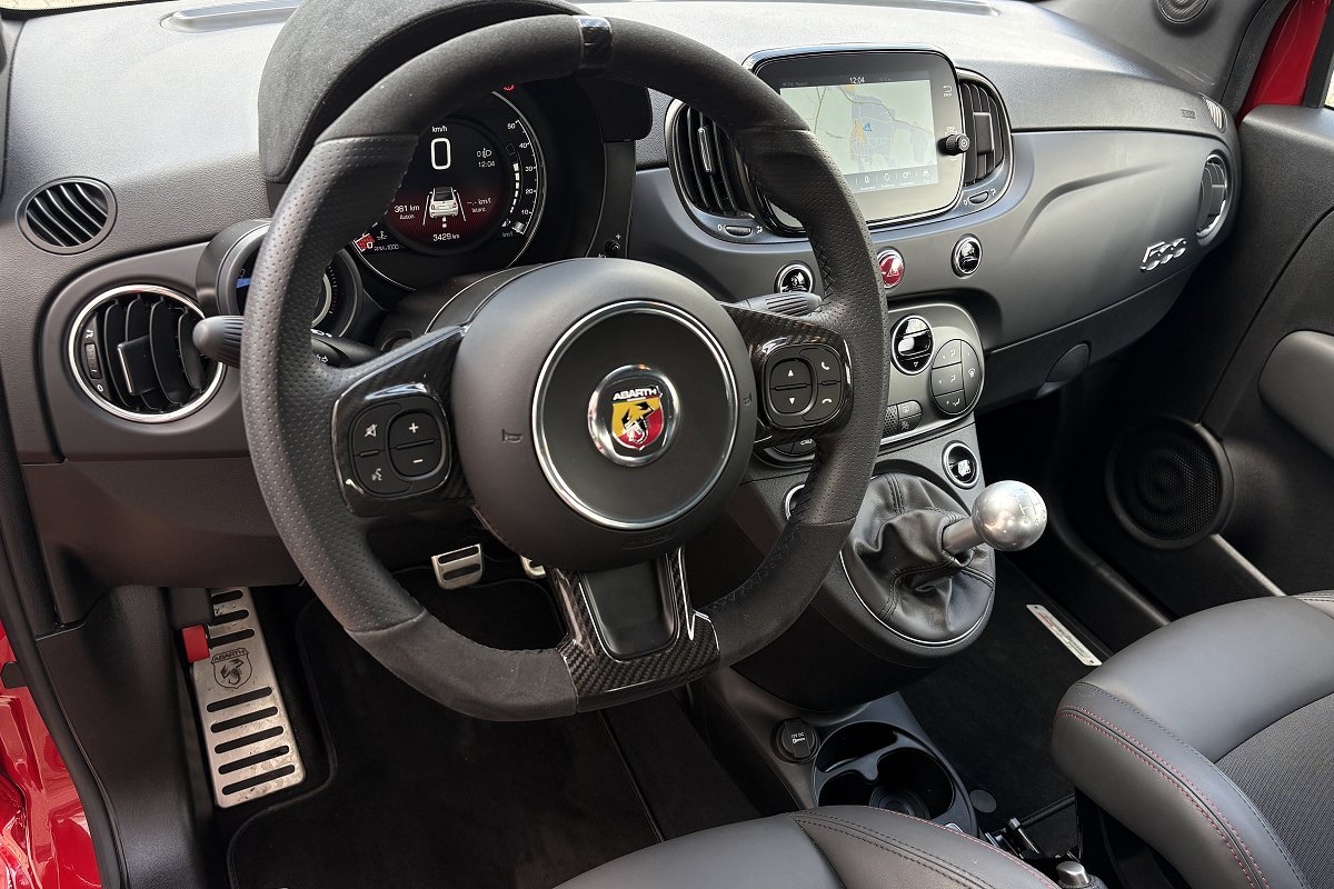 | Sedili Abarth sportivi in tessuto nero con cuciture a rombi |