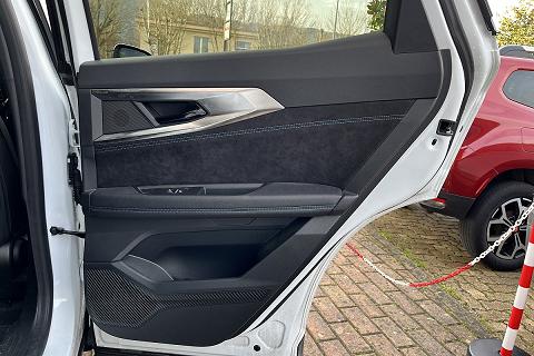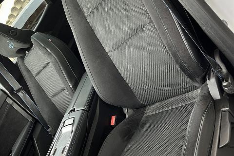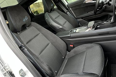 | Sellerie in misto tessuto/Alcantara color carbone con imputure blu e logo Alpine su poggiatesta |