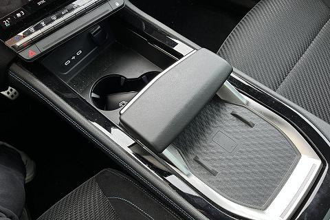| Console centrale alta con bracciolo portaoggetti scorrevole |