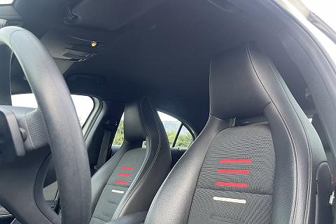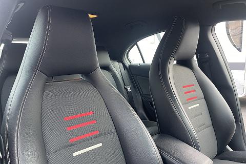 | Sedili sportivi in pelle ecologica ARTICO e tessuto nero con righine rosse |