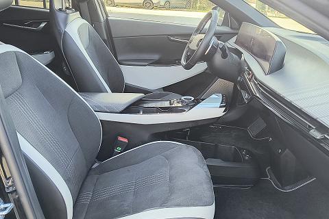 | Sedili in tessuto scamosciato e pelle vegana |