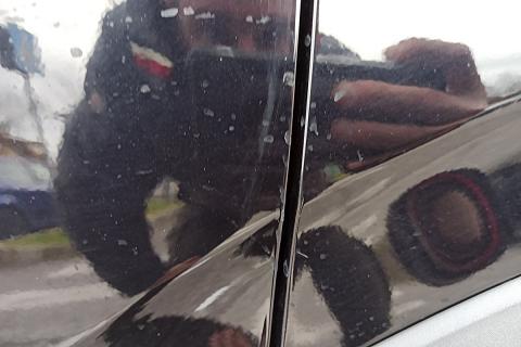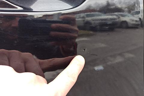 | Impunture rosse sui pannelli delle porte e sul bracciolo centrale |