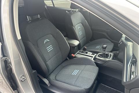 | Rivestimenti dei sedili in tessuto Nunatak con impunture blu |