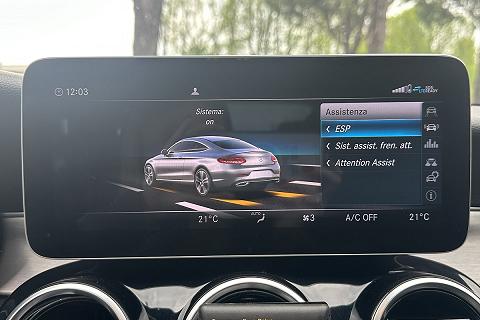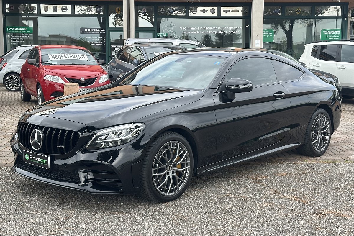 PERIZIA DELL'ESPERTO PRIVACAR: MERCEDES C 300 d Auto 4Matic Coupé Premium, allestimento AMG, manutentata REGOLARE. Gomme e freni in buono stato. La vettura si presenta in ottime condizioni e dispone di vari accessori come sedili in pelle/alcantara elettrici, volante in pelle multifunzione, leve al volante, vivavoce, Bluetooth, Cruise control, CarPlay, navigatore, cambio automatico, climatizzatore Bi-zona, TETTO PANORAMICO, cerchi in lega da 18 pollici, sensori di parcheggio POSTERIORI, e molti altri visibili sul nostro sito. Possibilità di GARANZIE sui guasti meccanici fino a 60 mesi, importo comodamente FINANZIABILE ma NON vincolato, quindi con possibilità di pagamento in un unica soluzione! Fissa un APPUNTAMENTO presso la nostra sede!